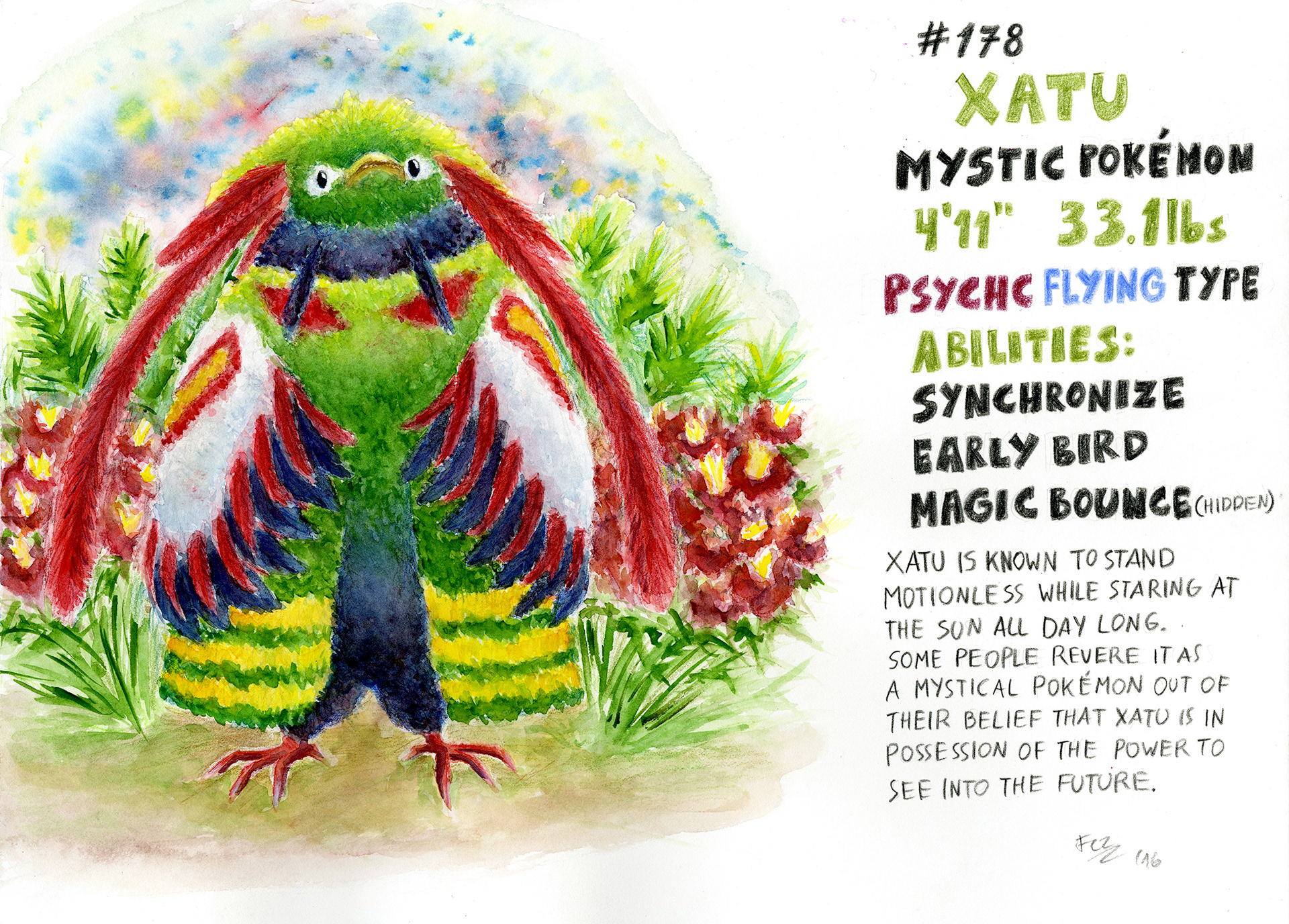 The Project: Recreate creatures from fantasy or mythology into what they would look like in real life in a sort of field-guide/sketchbook fashion using watercolors and color pencil.